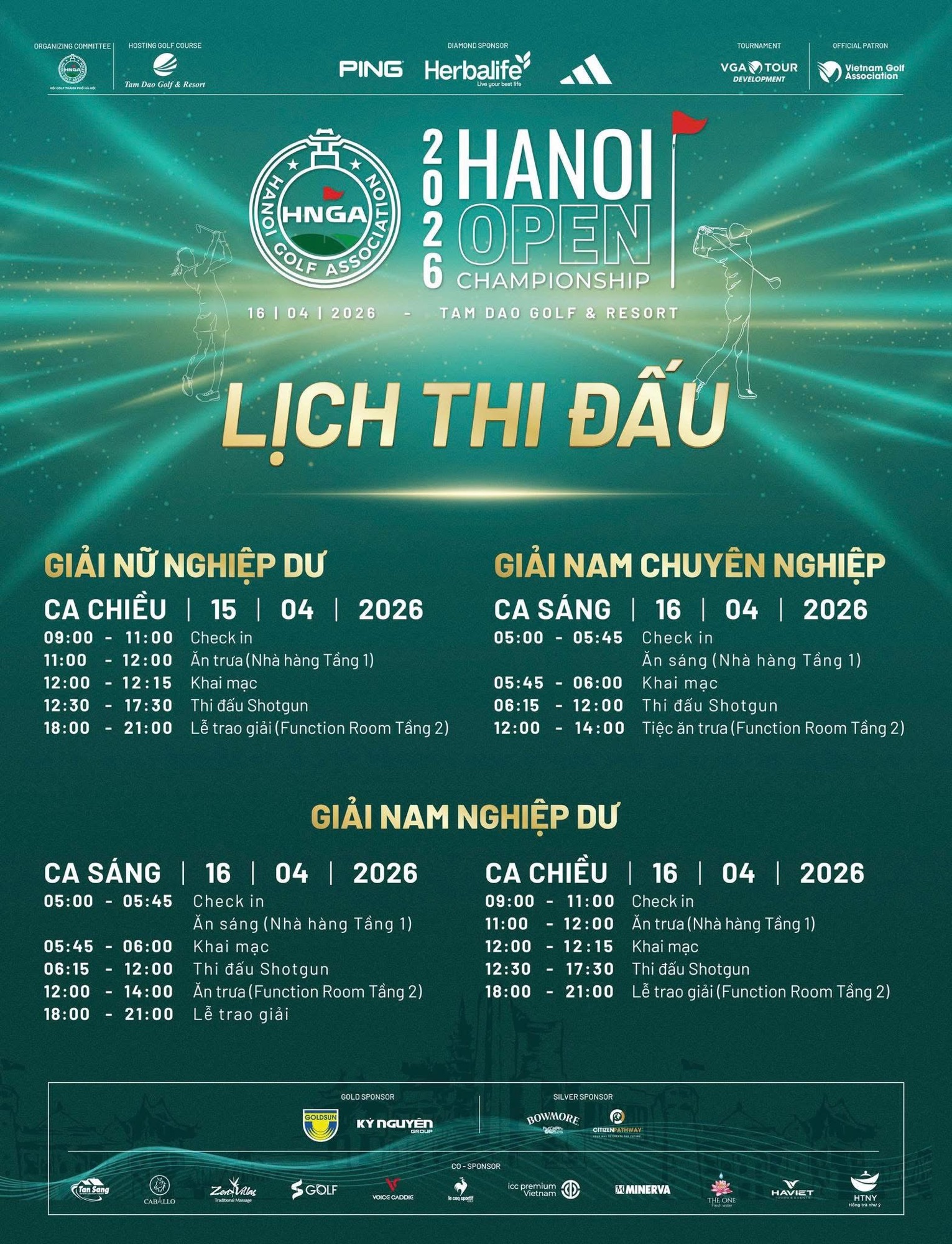 Hanoi Open 2026 quy tụ 500 golfer tại sân golf Tam Đảo, gồm bảng chuyên nghiệp, Nam mở rộng, Nữ mở rộng, quỹ thưởng 150 triệu đồng hấp dẫn.
