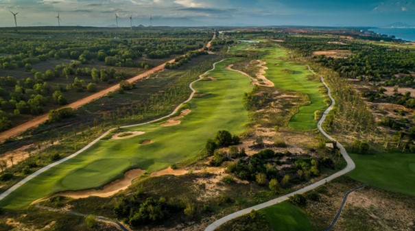 Fairway rộng nhưng nhiều bunker và gió biển.