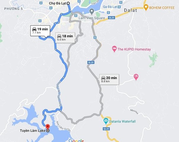 • Tuyến đường chính: Trần Hưng Đạo → Đèo Prenn → Hồ Tuyền Lâm